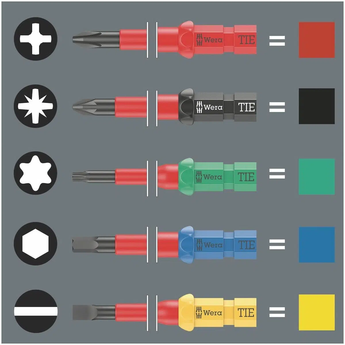 Perfil de salida | Destornillador Plano; Destornilladores Pozidriv; Destornillador para Phillips; Destornillador para tornillos TORX®; Destornillador de perfil combinado Pozidriv/ranura |